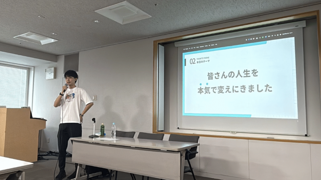 本イベントは「起業」「就活」をテーマに、将来のキャリアに漠然と不安を抱える学生や若手社会人に向けて実施され、西尾自身の実体験をもとに、オフラインだからこそ伝えられるリアルな情報を共有しました。